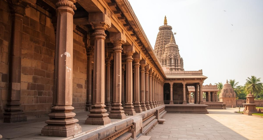 The temple towers rise like crystallized prayers 🛕, their shikharas stacking rhythm upon rhythm, echoing Mount Meru itself. Geometry replaces ornamentation, symmetry replaces excess 📐. Stone becomes mantra. Time recognizes that pleasure, when aligned with Dharma, naturally inclines toward transcendence. Nothing is rejected. Nothing is excessive. Everything belongs.